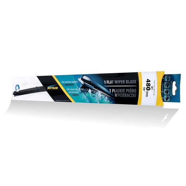 - Lapos ablaktörlő lapát. A Motgum ablaktörlőknek van egy gumibetéte, amelyet közvetlenül az ablaktörlő rugóléceinek belsejébe szerelnek, a fémkeretet kihagyva, ami egy megfelelően illeszkedő formával együtt csökkentett légellenállást eredményez.